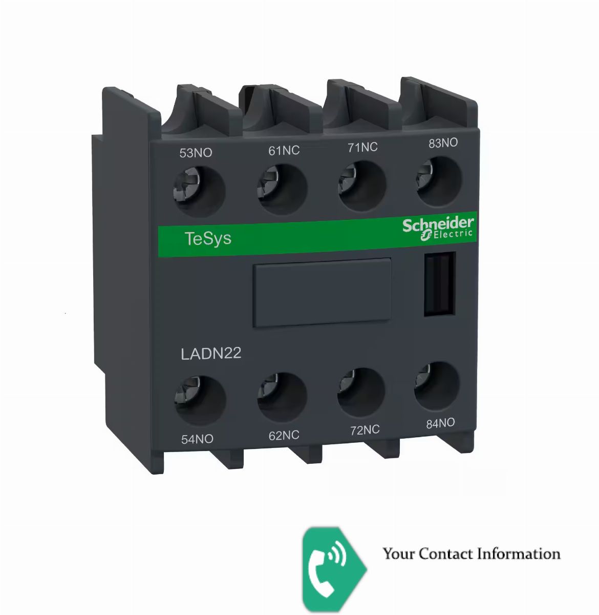 TeSys Deca, auxiliary contact block, 2 NO and 2 NC, top mount, screw clamp terminals, for LC1D09 to LC1D150 contactors