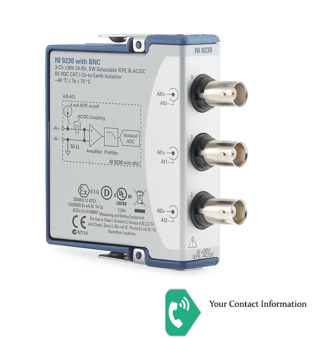 3-channel C Series dynamic signal acquisition module for making industrial measurements from integrated electronic piezoelectric (IEPE) and non-IEPE sensors with NI CompactDAQ or NI CompactRIO systems 3 AI, ±30 V, 24 Bit, 12.8 kS/s/ch Simultaneous