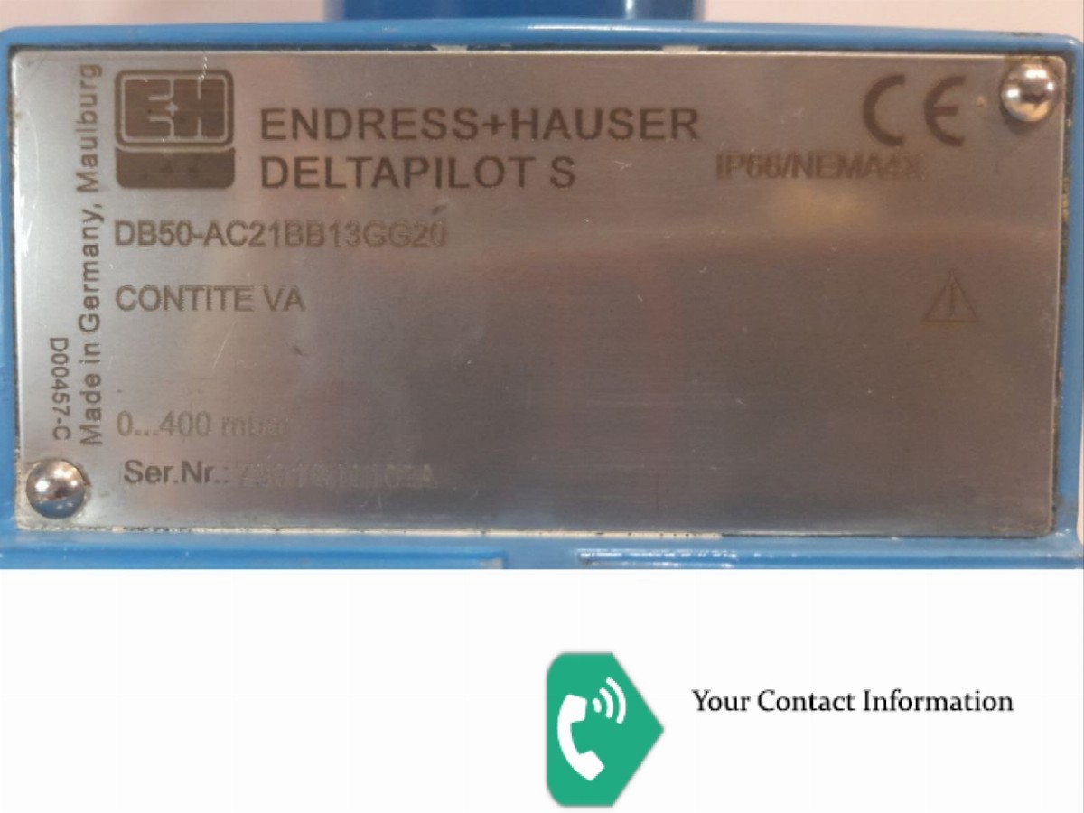 Deltapilot S DB50 DB50-AC21BB13GG20 Approval: A = Non-hazardous area Probe: C = Compact version Process Connection: 21 = DN50 PN10/16 B1, 316L flange EN1092-1 (DIN2527 C) Measuring Range: BB = 0...400mbar/4mH2O/160inH2O Linearity; Fill fluid: 1 = < 0.2%; FDA compliant Measuring Sensor Seal: 3 = Sensor welded Electronics; Output: G = FEB22; 4-20mA HART + display Housing; Cable Entry: G2 = Alu IP66; gland M20 Additional Option: 0 = Basic version