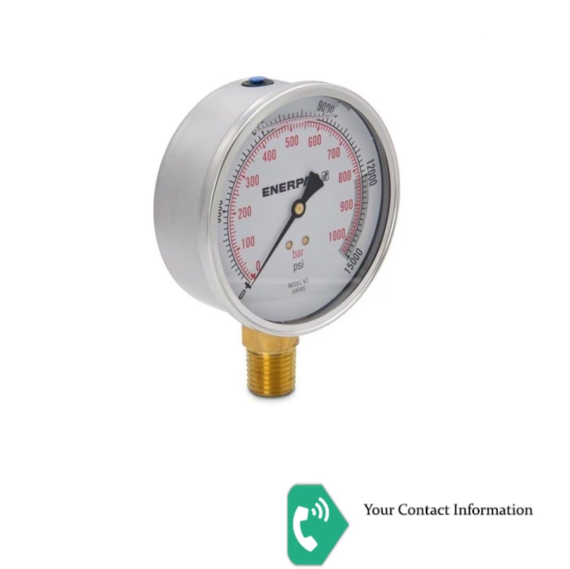Hydraulic Pressure Gauge, 4.0 in. Face, Lower Mount, Glycerine Filled, 15,000 maximum psi
