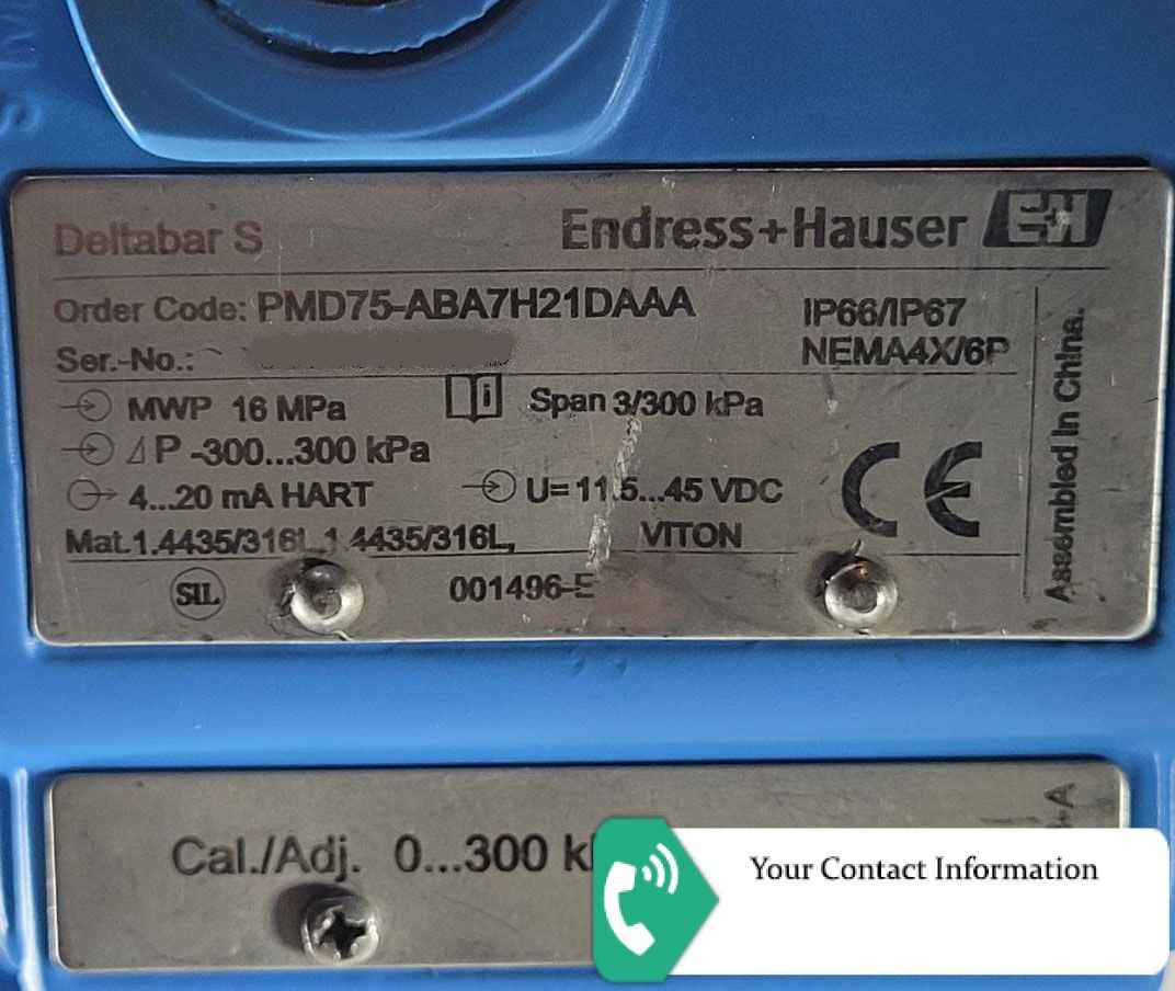 Nominal Range; Cell Material; PN: 7H = 3bar/300kPa/45psi; 316L; 160bar/ 16MPa/2400psi