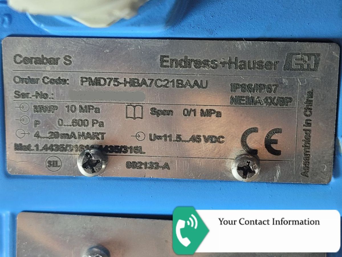 Nominal Range; Cell Material; PN: 7C = 30mbar/3kPa/0.45psi; 316L; 160bar/ 16MPa/2400psi