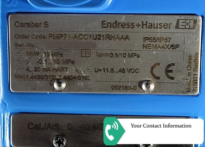 PMP71-ACC1U21RHAAA Approval: A = Non-hazardous area Output; Operating: C = 4-20mA HART; inside Housing; Cover Sealing; Cable Entry: C = T14 Alu IP66/67 NEMA6P; EPDM; NPT1/2 thread, T14 = side cover Sensor Range; Sensor Overload Limit: 1U = 100bar/10MPa/1500psi gauge; 400bar/40MPa/6000psi Calibration; Unit: 2 = Sensor range; kPa/MPa Membrane Material: 1 = 316L Process Connection: RH = Thread ANSI FNPT1/2, 316L Fill Fluid: A = Silicone oil Additional Option 1: A = Not selected Additional Option 2: A = Not selected