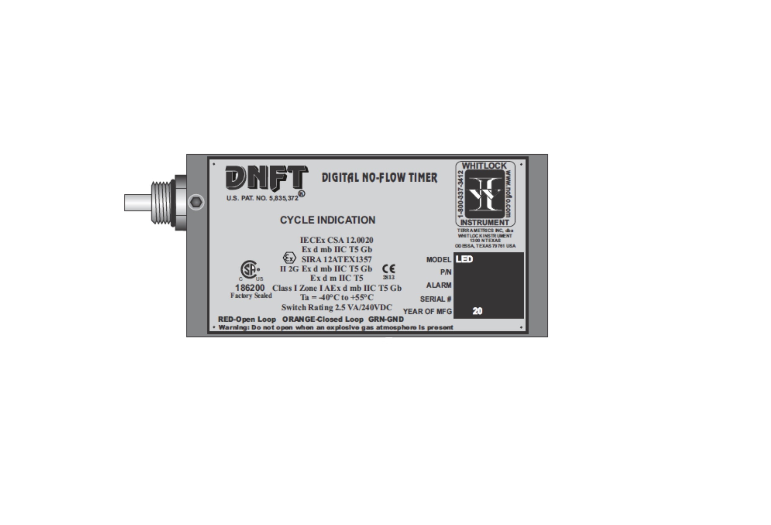 DNFT-LED Temperature Range: -40°C to +55°C Switch Rating : 2.5VA/240 VDC PRX Rating : 2.5VA/200 VDC MAX/0.5A Epoxy Encapsulated : UL LISTED EL-CAST VFR 641 Alarm/Shutdown : Factory default for 2 minute alarm Power : Field Replaceable - Lithium Battery 3.6 Volt, 1.5Ah, 75mA MAX Contentious Current