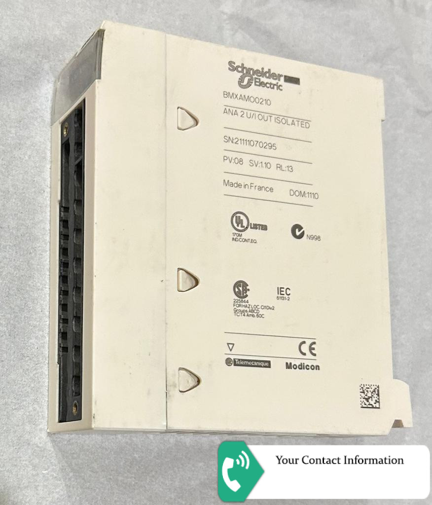 Schneider BMXAMOO210 isolated analog output module X80 - 2 outputs Range of product = Modicon X80 Electrical connection = 20 ways 1 connector Measurement error = <= 0.2 % of full scale 0...60 °C 0.1 % of full scale 25 °C Temperature drift = 30 ppm/°C
