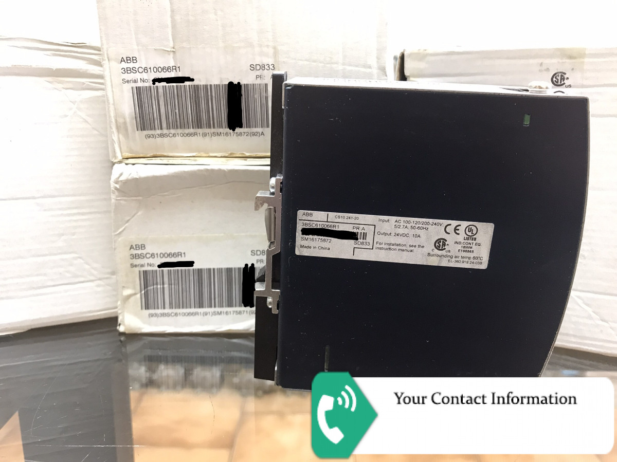 ABB ABB Type Designation: SD833 3BSC610066R1 Power Supply, 10A Input a.c. 100-120/200-240 V, auto-select input. Output d.c. 24 V 10A. If redundant power application is required connect to SD8XX voting unit. DIN rail mounted. G2 compliant.